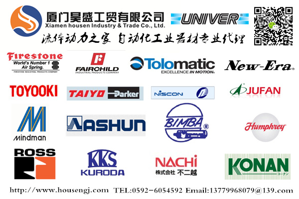 1: UNIVER電磁閥,手動閥,氣缸,無桿氣缸,強力夾緊氣缸; 2: FIRESTONE空氣彈簧、氣囊,氣囊緩沖器; 3: TAIYO太陽鐵工株式會社,氣缸,油缸,緩沖器,增壓缸,膜片泵,液壓氣動元件; 4: 美國Fairchild(仙童)增壓器,減壓閥,變換器,調節(jié)器,放大器,繼電器,控制閥; 5: 日本New-Era(新時代)株式會社,New-Era氣缸,導軌,電磁閥,氣動手指; 6: 德國BOSCH-REXROTH博世-力士樂氣動液壓元件,換向閥,氣缸,電磁閥,柱塞泵; 7: ELECTRO ADDA電機,VARVEL減速機,齒輪減速電機,齒輪減速器,齒輪箱,齒輪減速馬達,蝸輪減速機; 8: TOYOOKI(豐興)工業(yè)株式會社,油泵,電磁閥,定量葉片泵,減壓閥,流量控制閥,壓力控制閥,液壓元件; 9: 美國Tol-O-Matic無桿氣缸,桿型氣缸,線性滑動氣缸,拉線氣缸,離合器,機械制動器,方向轉換器; 10: TOGNELLA油壓,調節(jié)閥,針型閥,節(jié)流閥-中國總代理; 11: JUFAN臺灣君帆,mindman金器 CML全懋 KOMPASS康百世.朝田,氣缸,油缸大陸專業(yè)銷售; 12: panasonic(松下)小型馬達及減速箱--中國總代理; 13: norgren電磁閥,氣缸及各類氣動元件; 14: FESTO電磁閥,氣缸及各類氣動元件; 15: NIHON SEIKI日本(niscon) 電磁閥; 16: ASCO(美國)電磁閥, 各類氣動元件--中國代理; 17:ANSON安頌 TAI-HUEI臺輝 ASHUN油順,FONRAY芳銳 TWOWAY臺肯 SANLI欣三立等臺灣知名品牌專業(yè)銷售。